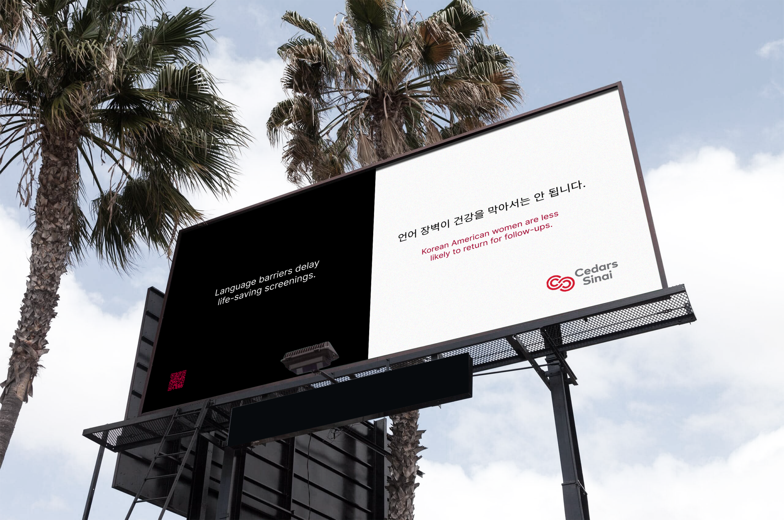 To address language and cultural barriers, this Korean language chatbot on the Cedars-Sinai website offers culturally appropriate responses to reduce confusion and encourage cancer screenings. Providing educational information, the chatbot gently guides users in setting up screenings and offers FAQs and video references related to specific inquiries. Ancillary brochures and billboards target the Korean communities with simple graphics and Korean text that encourage viewers to learn more about the screening process – that bring them back to the Cedars-Sinai website and the chatbot.