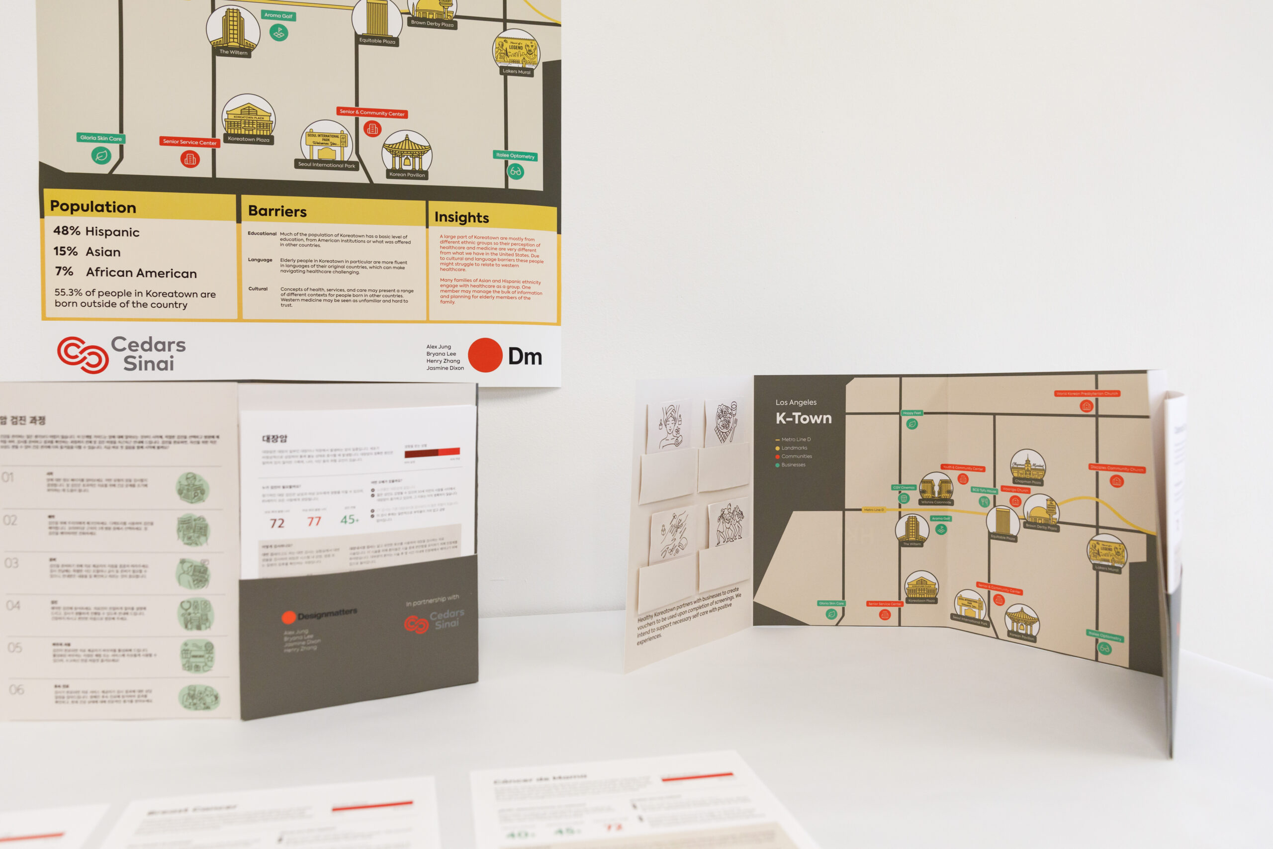 To assist community leaders/organizations in Koreatown spread the word about cancer screening, this project creates a personal packet of cancer-screening educational materials as well as local incentives. Available in Spanish, Korean and English versions, the packet is distributed at churches, senior centers and Eastern medical clinics. The written resources simply explain the need for screening, the step-by-step process and how some tests can be done at home. On the left side of the folder cover, a series of coupons are presented; when an individual completes a cancer screening, they collect the gift. These coupons are from local businesses like restaurants, nail salons, etc. Coupons have a code so Cedars can collect data on how the packet has influenced users.